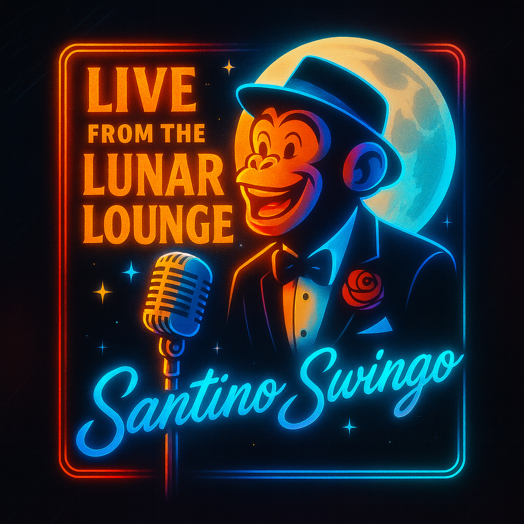 Radiant, playful, and impossibly smooth, Live From the Lunar Lounge is Santino Swingo at his most celestial - a performance that turns one small stage into an entire universe.