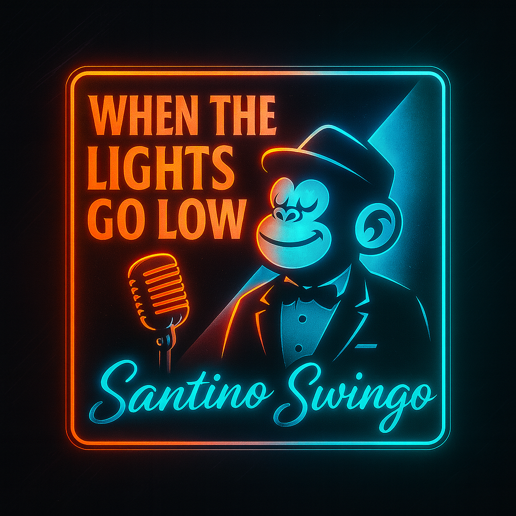 When the Lights Go Low is Santino Swingo’s most intimate twilight album — a quiet, golden-hour walk through memory, gratitude, and the gentle glow that lingers long after the spotlight fades. This is Santino not as the king of cool or the gentleman thief, but as a man looking back with warmth, humility, and a heart still full of melody.