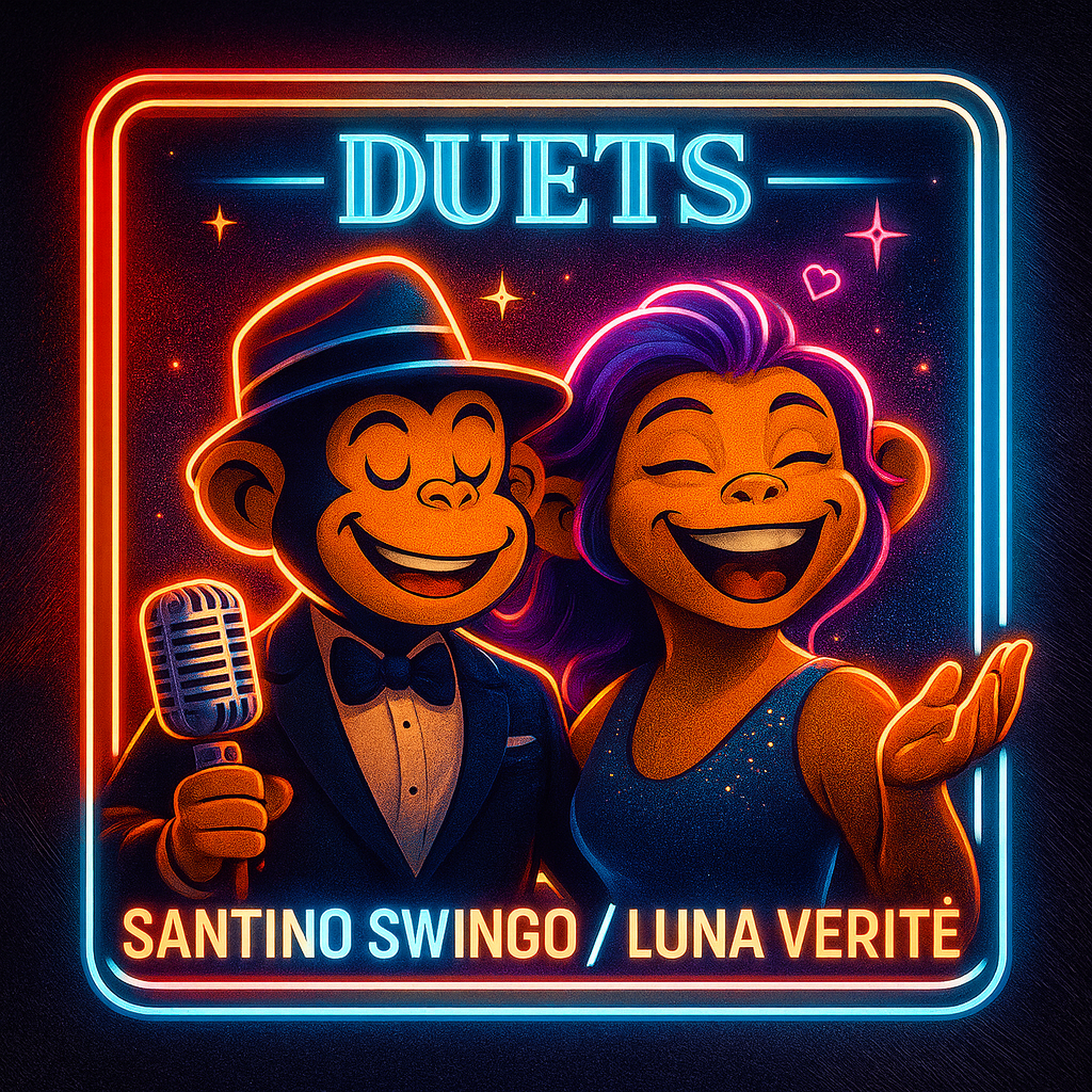 Duets is Santino Swingo at his most intimate — an album of shared glances, intertwined melodies, and voices meeting in the soft space between heartbeats. These songs aren’t about stealing the spotlight; they’re about standing shoulder to shoulder beneath it, letting harmony do the storytelling.