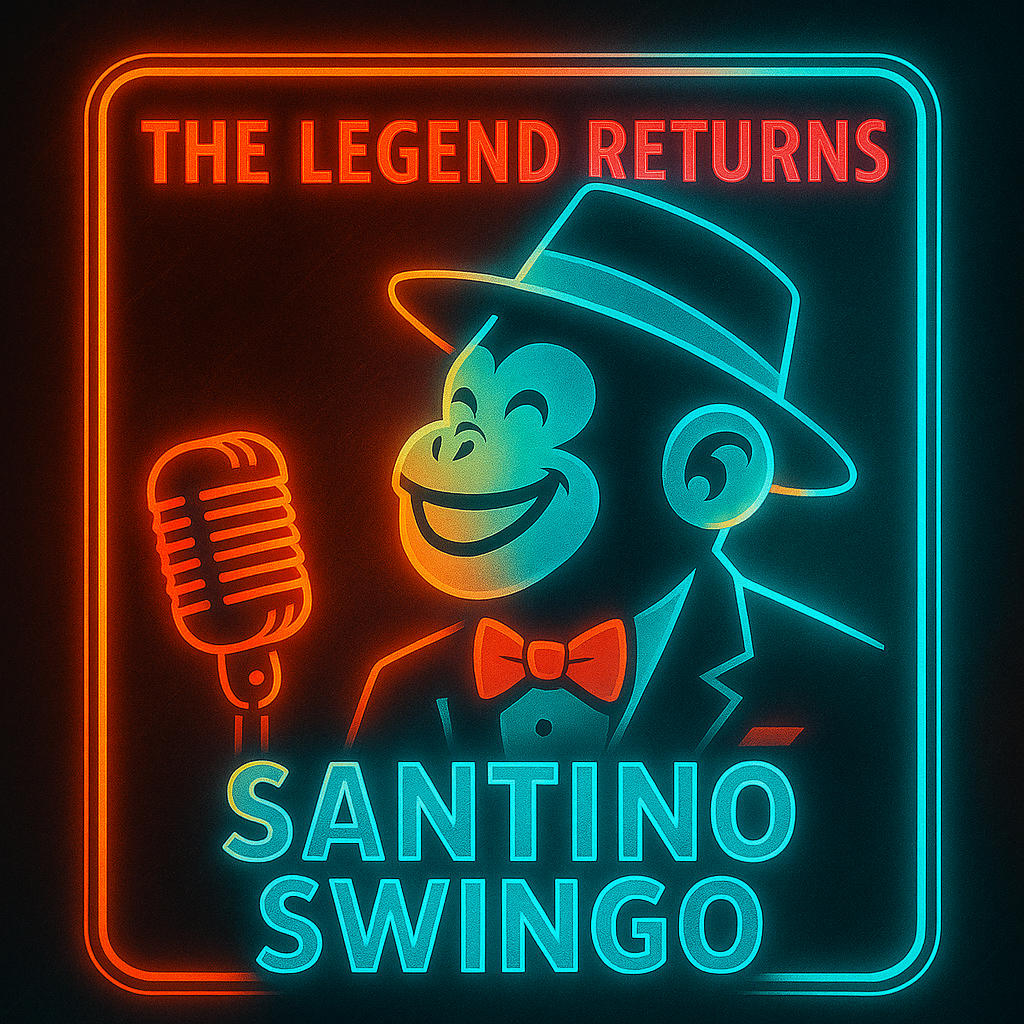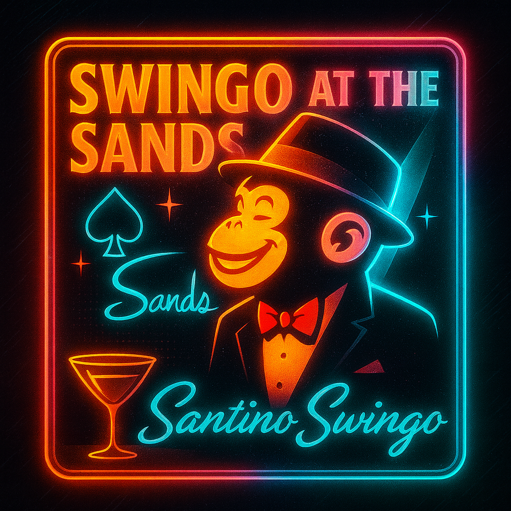 Swingo at the Sands captures Santino Swingo in his natural habitat — center stage, under a low ceiling of lights and legends, with the band tight, the crowd leaning in, and the night stretching endlessly ahead. This album is pure Vegas: silk-lined swagger, martinis sweating on tabletops, and a voice that knows exactly how to work a room.