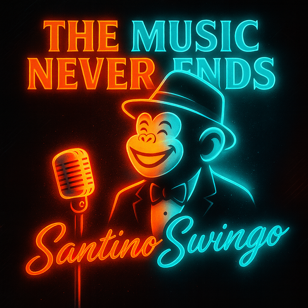 Joyful, soulful, and irresistibly alive, The Music Never Ends is Santino Swingo’s love letter to the art that shaped him — an album that proves the beat may change, but the swing goes on forever.